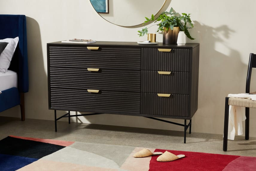 140 cm genişlik, 88 cm yükseklik ve 45 cm derinlik ölçüleriyle odanızda yer kaplamadan bolca depolama alanı sunuyor. 3 büyük ve 3 küçük çekmecesi ile hem giysilerinizi hem de diğer eşyalarınızı kolaylıkla saklayabilirsiniz. Çekmece kapaklarındaki cnc işlemeler ile minimal ve modern bir dokunuş kazandırdık.